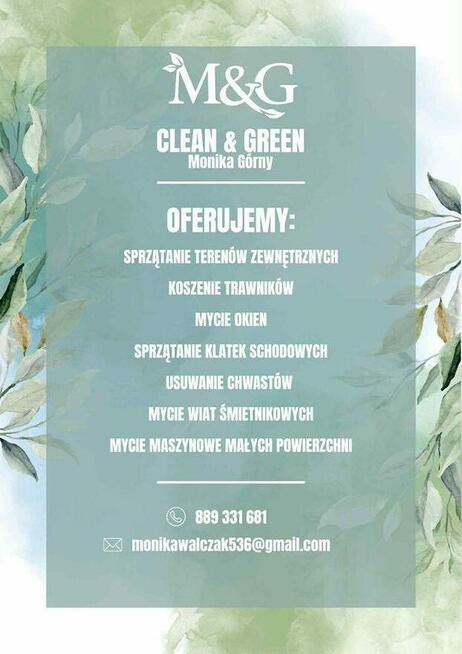 Dzień dobry firma M&G Clean & Green, zajmująca się sprzątaniem, myciem oraz utrzymaniem terenów zewnętrznych ...